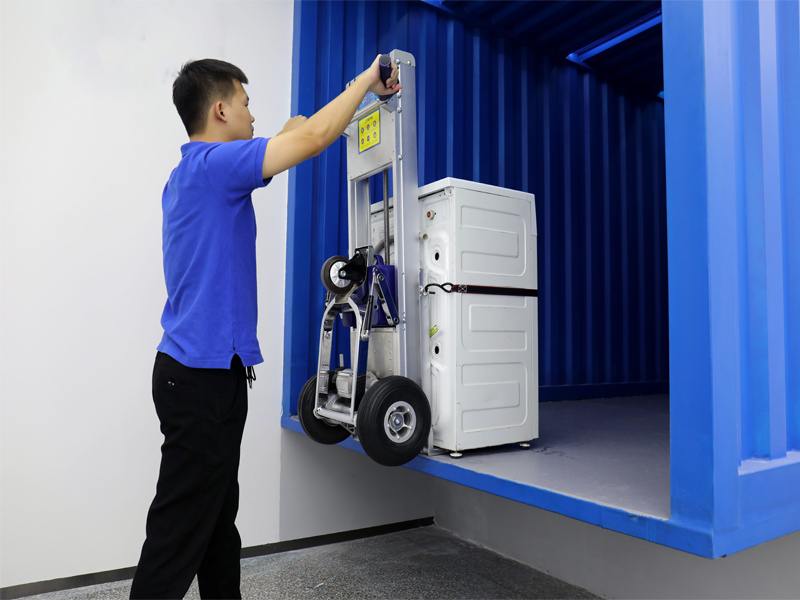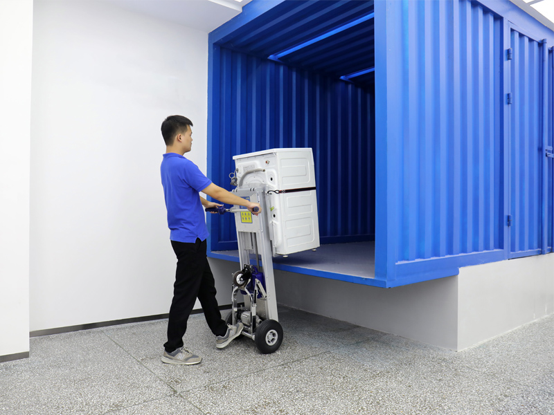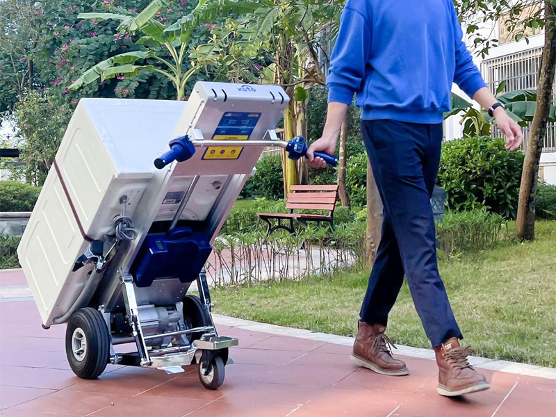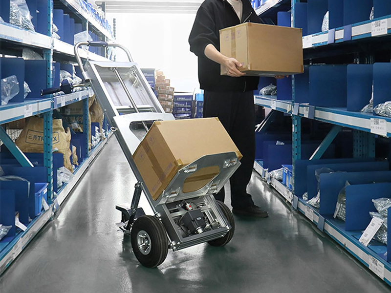 This hand truck features a lifting control handle for easy raising and lowering of loads, and a plug-and-play battery pack that boasts an auto-connection feature for hassle-free power management